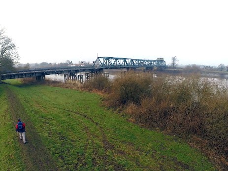 The first of the Three Bridges on the walk will now be in view - the Railway Swing Bridge. Continue under the bridge and keep on the footpath.